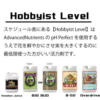 ・使用方法 開花最終2週間 1Lに対して2ml 肥料登録番号 輸第104633 スケジュールでは【Hobbyist Level】に該当してます。