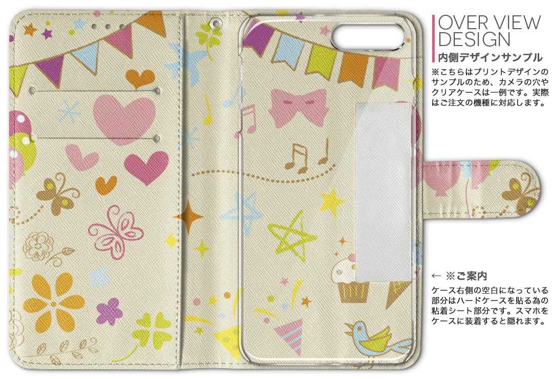 商品特徴・シームレスな両面フルデザイン、開いた時も内側のデザインが楽しめます・素材には高品質の人工革を貼った、しっかり厚みのあるタイプ・内側にはスマホを装着するケースが付属・機種専用のカメラホール仕様でケースを装着したままの撮影が可能・ワンセグや動画の視聴に便利な横置きスタンド機能・ICカードなどを2枚まで収納できるカードスロット&ポケット付き・マグネットフリップで開け閉めカンタン注意事項商品画像はサンプルイメージですので、ご覧の環境によっては多少色味に違いを感じる場合がございます。